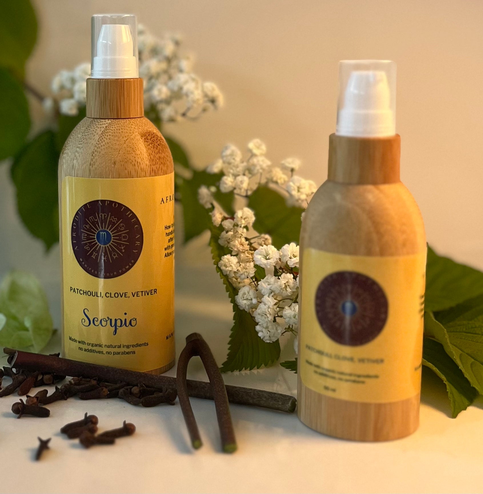 Perfumed Body Oil | SCORPIO - Zodiac Inspired | Organic Scented Moisturizer - Patchouli, Clove & Vetiver | Personalized Gift