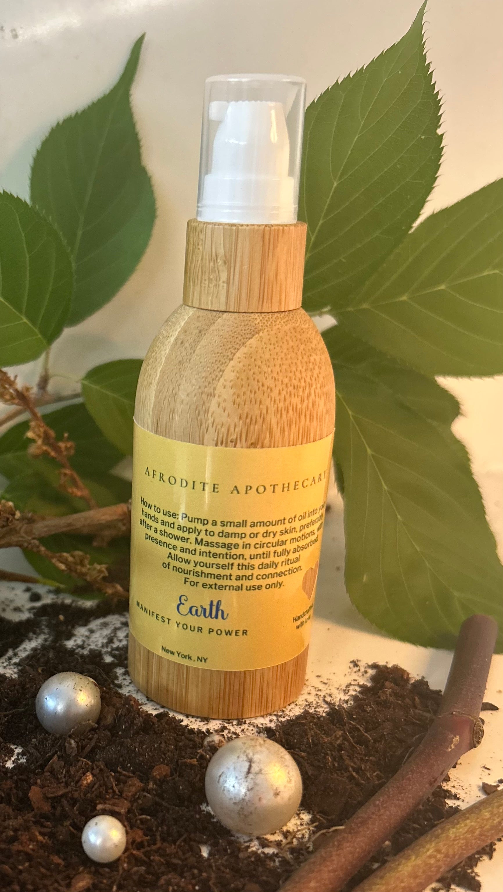 Perfumed Body oil l Organic Scented Moisturizer - EARTH Zodiac Inspired | Patchouli, Vetiver, Cedarwood & Sandalwood | Personalized Gift
