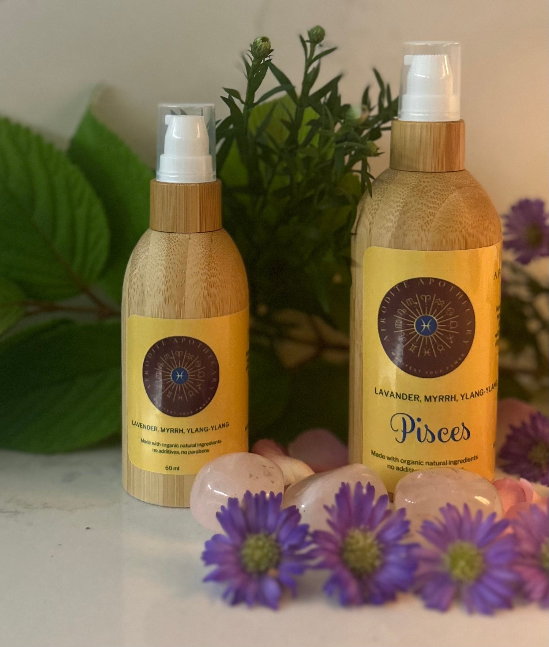 Discover your signature scent with our zodiac-inspired perfumed body oil. Handcrafted, all-natural, long-lasting fragrance tailored to your star sign. Herbs & Oils: Lavender, Myrrh, Ylang-Ylang. Dreamy and intuitive, PISCES benefits from lavender’s calm, myrrh’s spiritual depth, and ylang-ylang’s emotional release and sensual harmony. These 50 ml and 100ml bottles are perfect for daily self-care rituals, moon ceremonies, or as a thoughtful gift for astrology lovers. Infused with nourishing botanicals and essential oils, each formula is designed to support your energy and reconnect you with your element. • 100% natural & organic ingredients • Hand-poured with love and celestial intention • Suitable for all skin types • No parabens, no synthetics • Reusable wooden glass bottle • 50ml: Volume: 1.7 fl oz | Weight: 1.6 oz | Size: 6.18 x 1.81 x 1.18 in • 100ml: Volume: 3,4 fl oz | Weight: 6.18 oz | Size: 6.18 x 1.81 x 2.36 in Use it during your morning rituals, after a bath, or before bed — let your sign guide you.