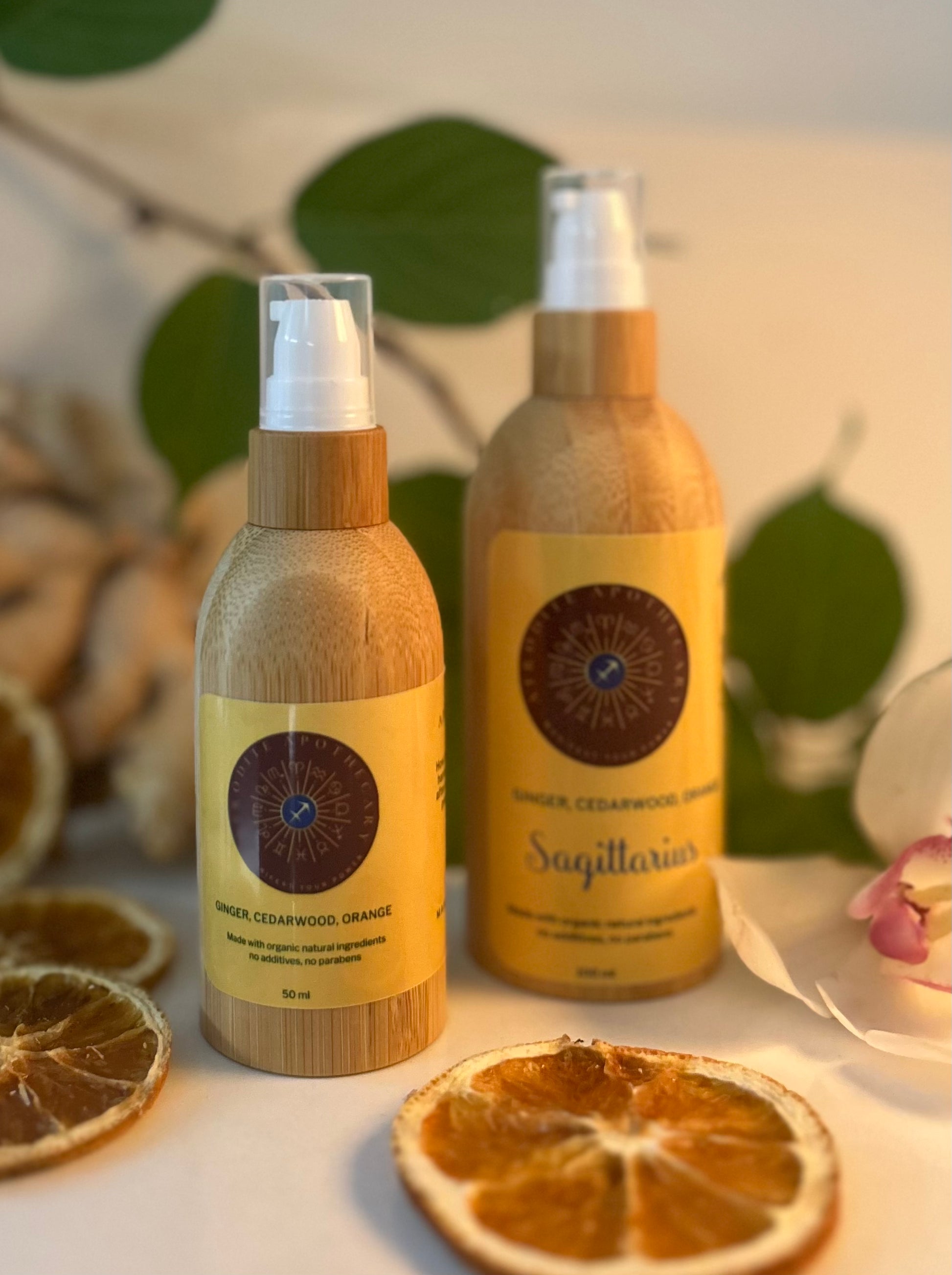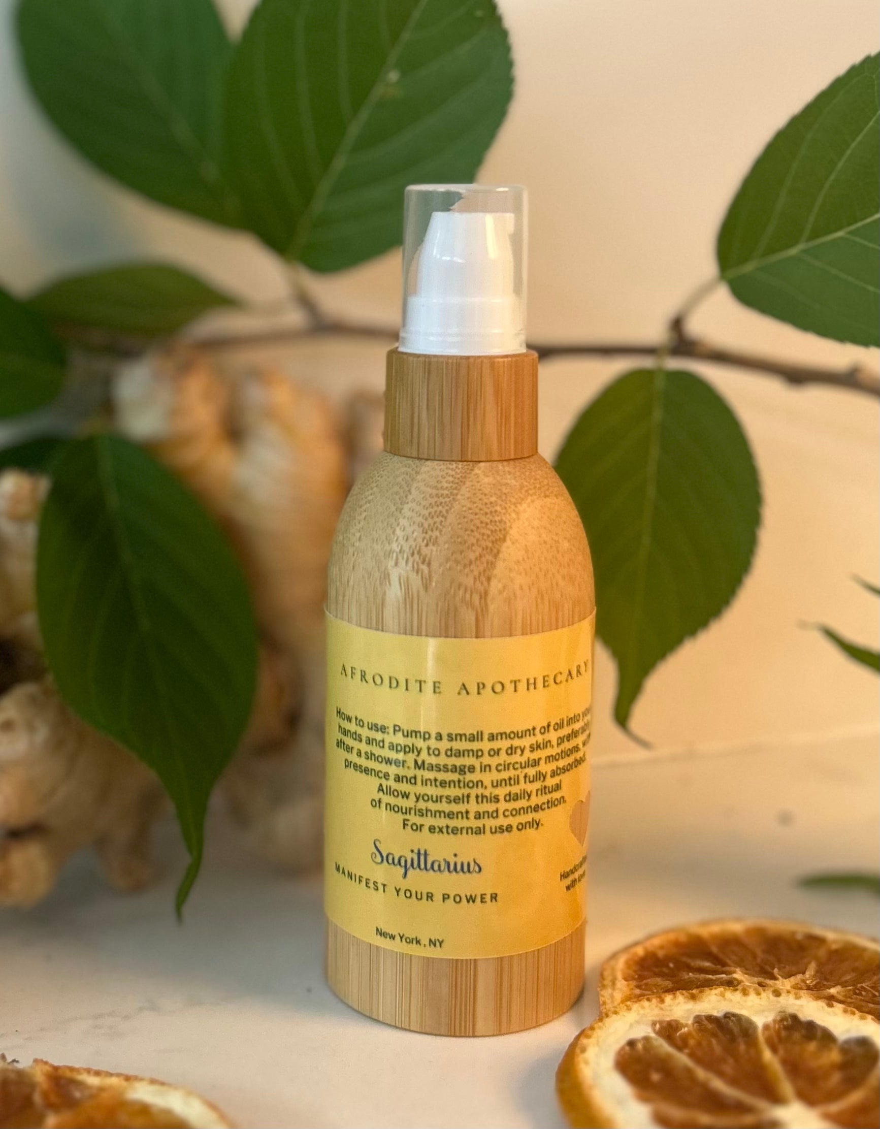 Perfumed Body Oil | SAGITTARIUS - Zodiac Inspired | Organic Scented Moisturizer - Ginger, Cedarwood & Orange.